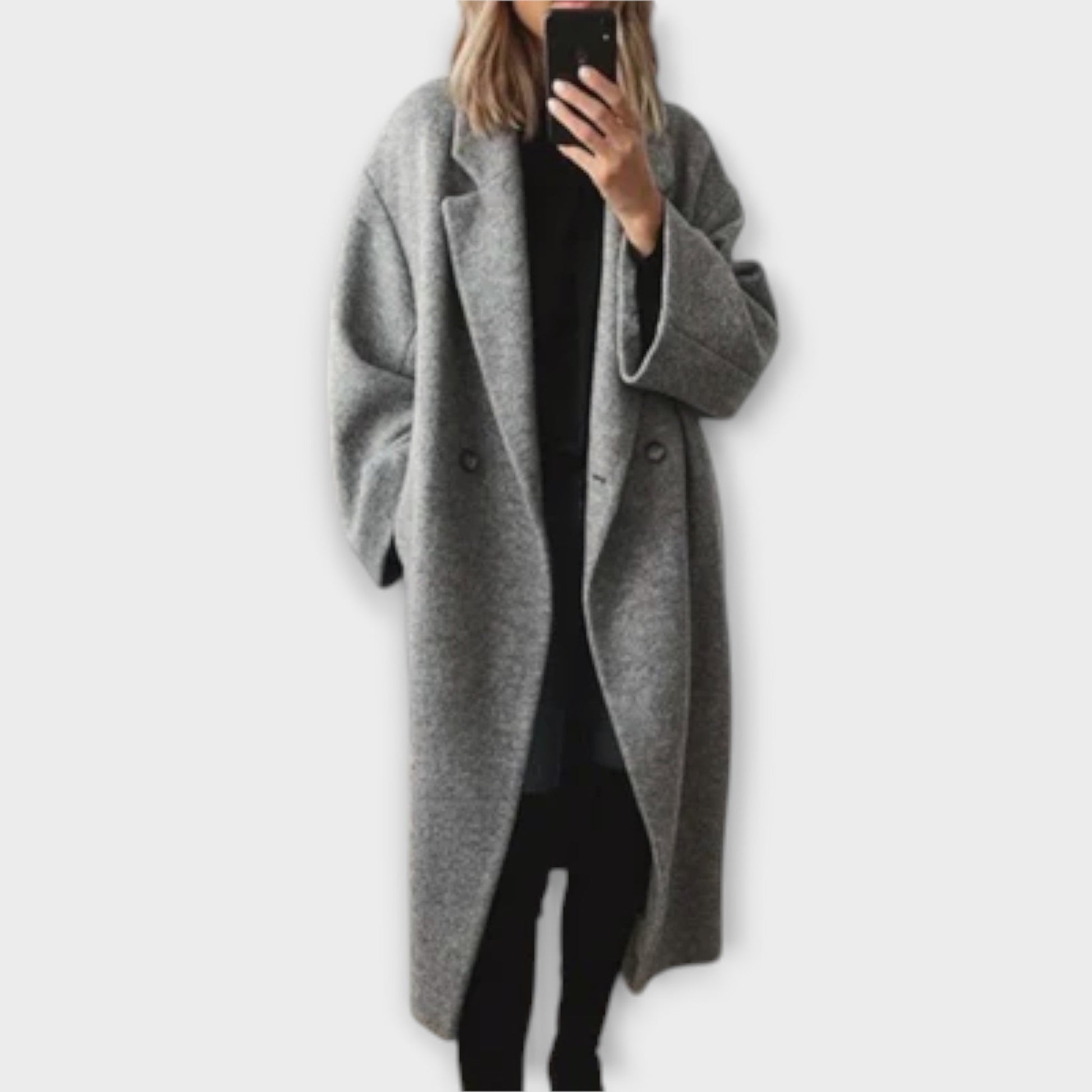 Elegantní dlouhý kabát s reverzním límcem dokonale spojuje rafinovanost a funkčnost. Luxusní látka se nejen příjemně nosí na pokožce, ale také chrání před chladnějšími teplotami. Se svým klasickým designem a stylovým reverzním límcem je tento kabát ideální volbou pro elegantní příležitosti i každodenní nošení.