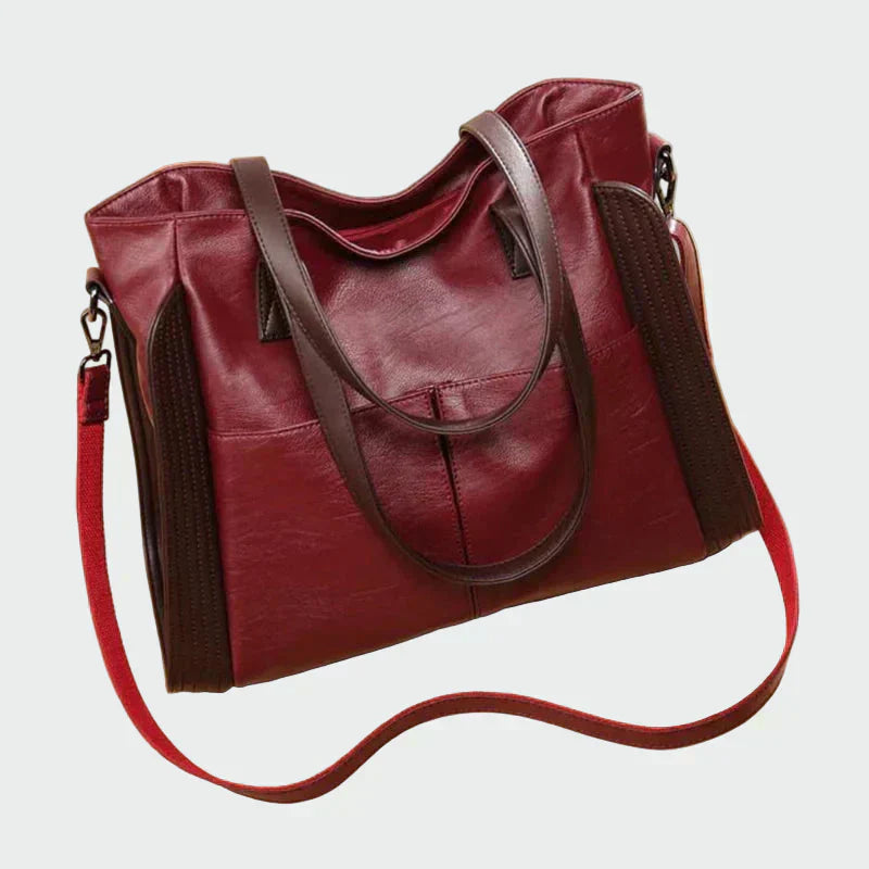 Elegantní kabelka přes rameno v černé barvě s hnědými detaily, které dodávají nadčasový charakter a jedinečný kontrast. Její prostorný design nabízí pohodlí a praktičnost pro každodenní použití, zatímco odnímatelný dlouhý popruh umožňuje nošení i křížem. Doplněk, který kombinuje styl a funkčnost, ideální do kanceláře i pro elegantní casual vzhledy.
